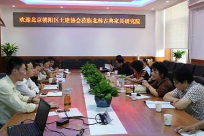 9月19日,由北京市朝阳区土木建筑学会与我院古典家具研究院举行的“凿袦工巧 共荣共建––古典家具与古典建筑的对话”共建研讨会在材料学院会议室召开,朝阳区土木建筑学会苏启俊理事长、王永志秘书长以及朝阳区建委领导等一行九人参与会议并到我院古典家具展室进行了参观,我校材料学院副院长吴庆利、古典家具研究院副院长汪立禹、常乐以及木质构造研究室高颖副教授参加了此次会议。